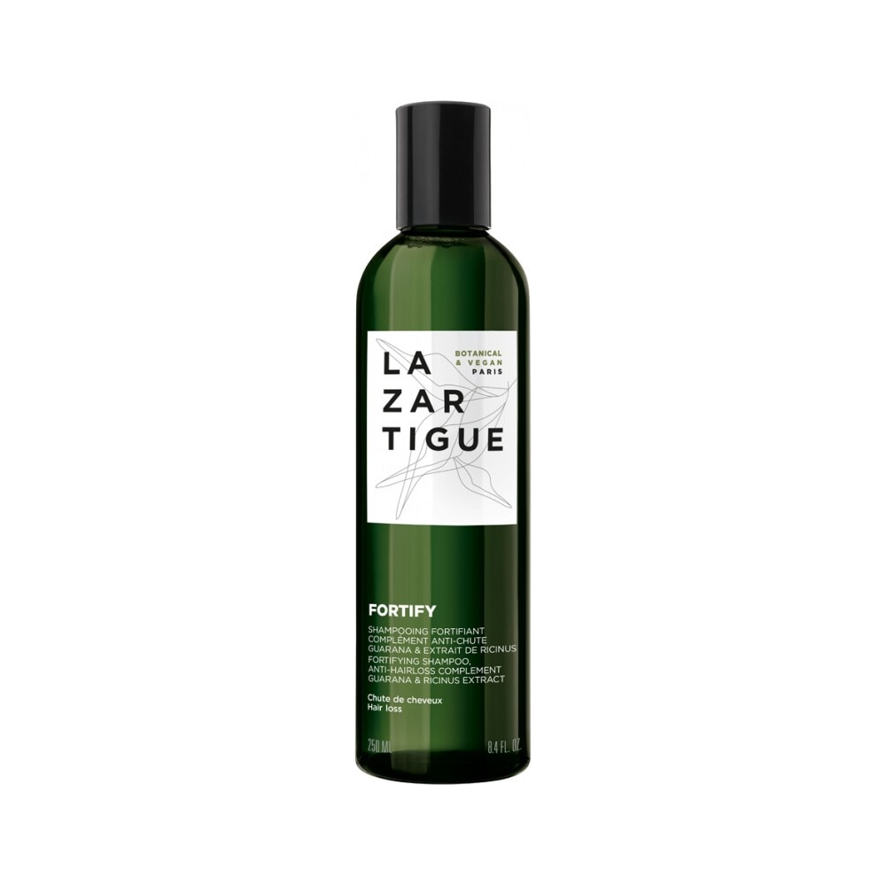 El champú Fortify fortalece el cabello debilitado y complementa la acción de un tratamiento anticaída específico. Le da al cabello los elementos esenciales para su vitalidad gracias a los beneficios botánicos del guaraná, que fortalece la fibra, estimula el cuero cabelludo y estimula el crecimiento. Enriquecido también con extracto de ricino, mejora la circulación en el cuero cabelludo para crear un ambiente favorable para el crecimiento del cabello. Día tras día, el cabello es cada vez más fuerte.