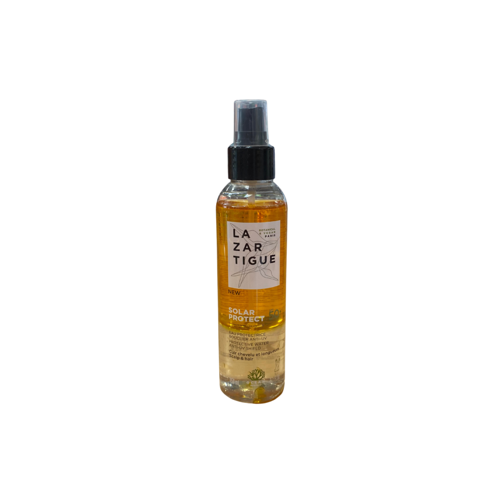 Agua protectora SPF50+ que hidrata y protege el cuero cabelludo y la fibra capilar de las agresiones externas: sol, sal, arena y viento.