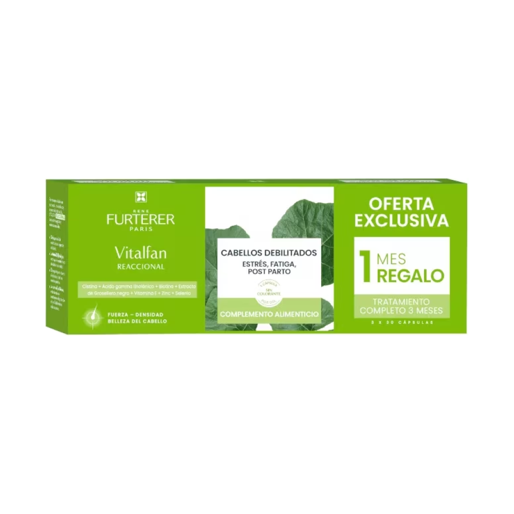 Este complemento alimenticio está formulado específicamente para ayudar a luchar contra la caída reactiva del cabello que puede desencadenarse por estrés, fatiga temporal, cambios estacionales, dietas, partos, etc., factores que pueden influir en el ciclo de vida del cabello y, por tanto, en la calidad de la queratina. Combina activos de origen vegetal y vitaminas y minerales esenciales :
