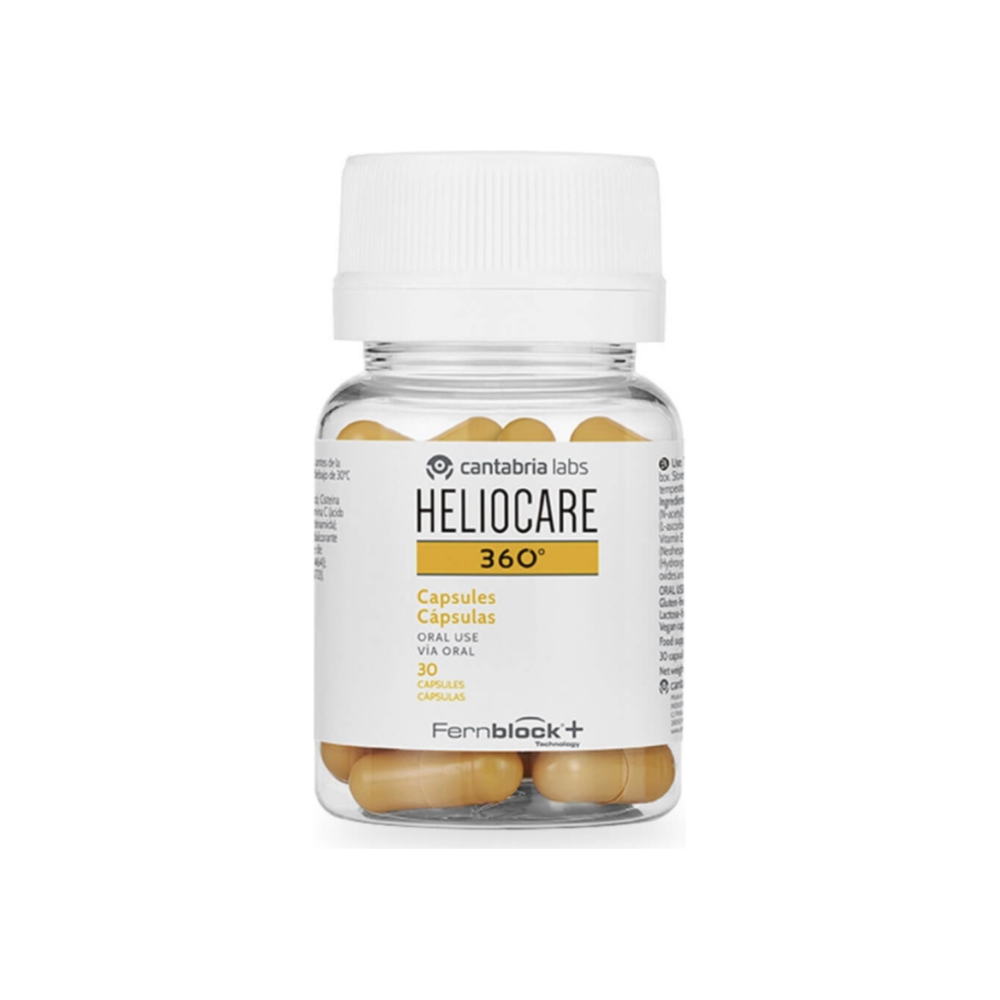 Cápsulas con alto contenido de ASPA-FERNBLOCK® nueva tecnología fotoprotecctora de Heliocare, que aumenta la resistencia de la piel al sol desde la primera toma, neutraliza y repara el daño solar y optimiza la funcionalidad de la vitamina D. En combinación con la Protección solar tópica consiguen una protección homogénea y más completa. Su fórmula incluye vitaminas D y E, y niacinamida. Sin gluten.