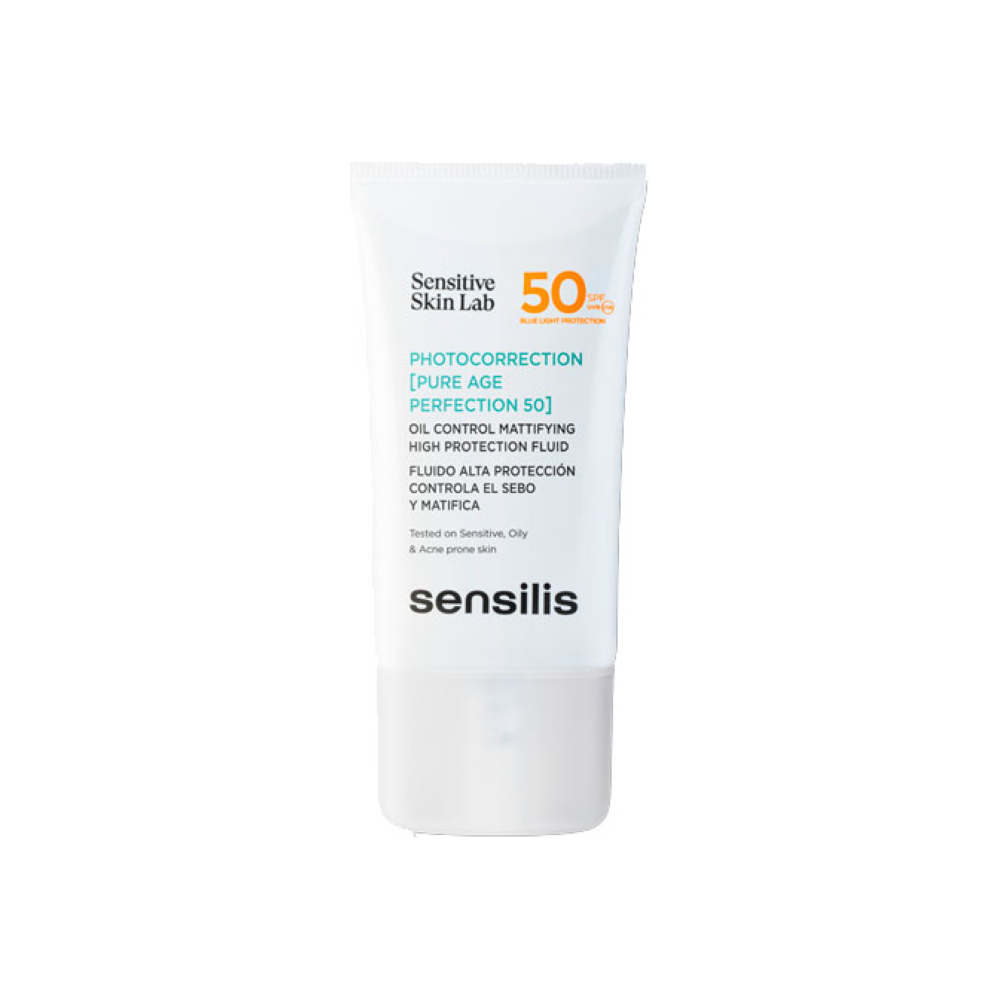 Fluido con alta protección 50 que controla el sebo, matifica y protege de los rayos UVA, UVB y de la luz azul a las pieles sensibles, grasas y con tendencia acneica. Formulado con Azeloglicina y Prebióticos, por su acción seborreguladora, Microesferas de Sílice, por su acción matificante, Ácido Lactobiónico, por su poder hidratante, y Alfa-Bisabolol, por su efecto calmante.